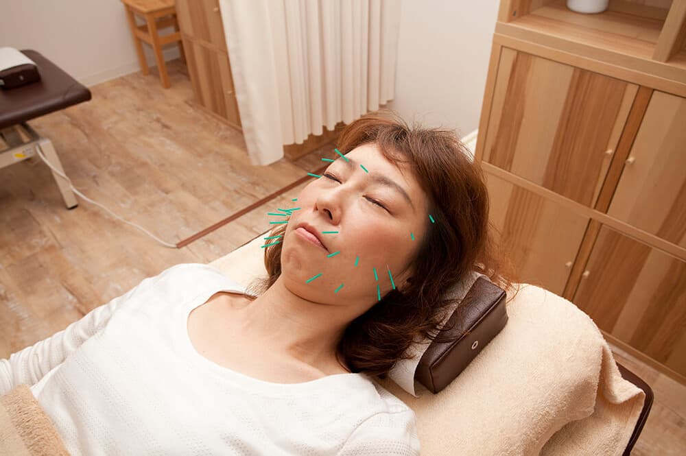 その結果、鍼で肌の内側にアプローチすることで、むくみやくすみ、しみ、しわなどの改善や、化粧ノリが良くなること等が期待できます。顔の筋肉にも直接アプローチしますので、筋肉のコリや緊張を緩和することができ、疲労回復や表情筋の働きが良くなります。